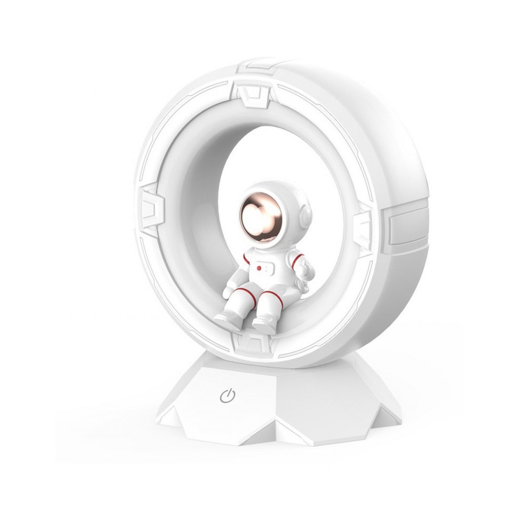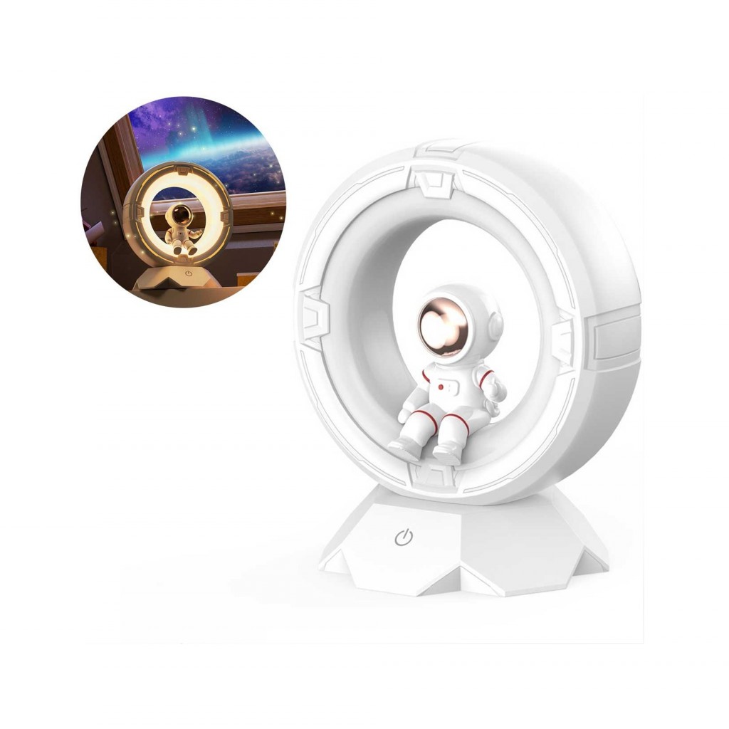 طراحی این چراغ خواب فانتزی شبیه به یک دروازه بین ستاره ای است با جزئیات آن که یک فضانورد داخل سطح آن قرار دارد، این ترکیب به همراه نورهای گرم نمایی جالب و سرگرمکننده برای کودکان ایجاد میکند. این طراحی باعث میشود که نه تنها یک منبع نور، بلکه یک دکور زیبا برای اتاق کودک باشد.