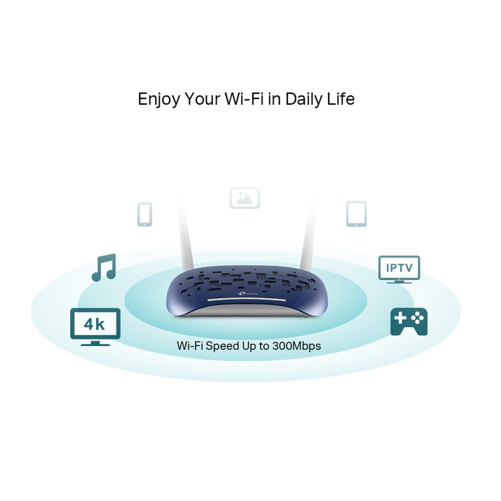 مودم TD-W9960 با سرعت بی سیم 300 مگابیت در ثانیه در باند 2.4 گیگاهرتز و 4 پورت مگابایت LAN، برای پخش جریانی HD، بازی های آنلاین و سایر برنامه های کاربردی با پهنای باند بسیار عالی است.