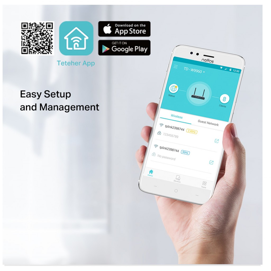 تنظیم مودم TD-W9960 را در دقیقه انجام دهید، به دست طراحی وب سایت کاربرپسند و برنامه قدرتمند Tether. تنظیمات شبکه را از جمله کنترل والدین و کنترل دسترسی را از هر دستگاه اندروید یا iOS