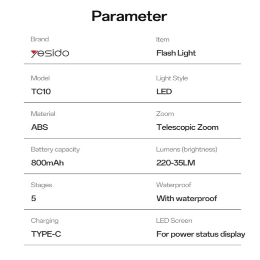 چراغ قوه شارژی یسیدو مدل Yesido TC10
