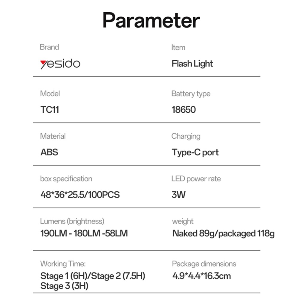 چراغ قوه شارژی یسیدو مدل Yesido TC11