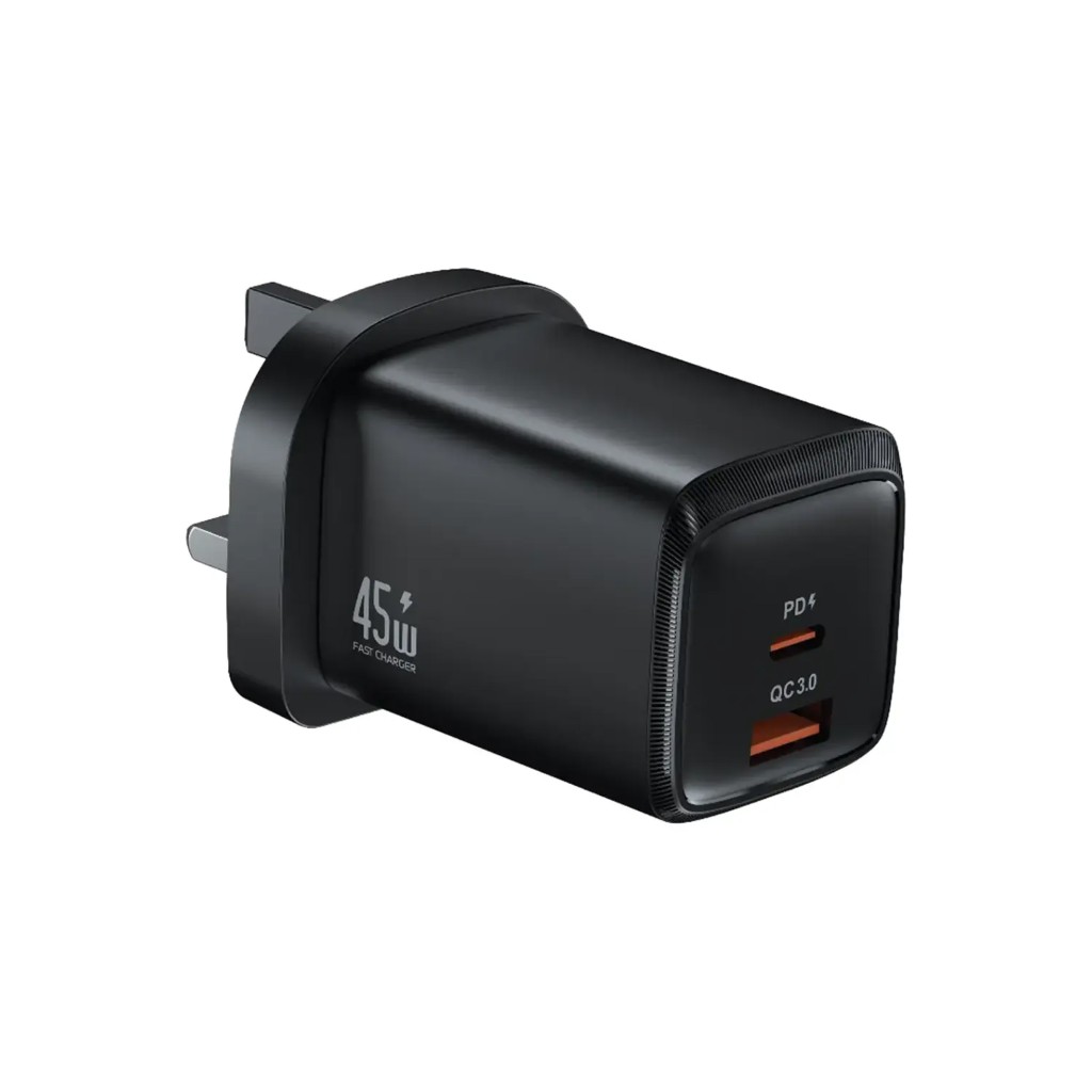 شارژر دیواری ۴۵ وات گرین لاین G-Charge Series Dual Port 45w یک راهحل قدرتمند و جمعوجور برای شارژ سریع است که با توان ۴۵ وات عملکردی کارآمد و مطمئن ارائه میدهد. این شارژر با دو پورت Type-C و USB-A و دوشاخه UK طراحی شده و از جنس ABS و مس ساخته شده است تا هم ایمنی بالایی داشته باشد و هم دوام طولانیمدت.