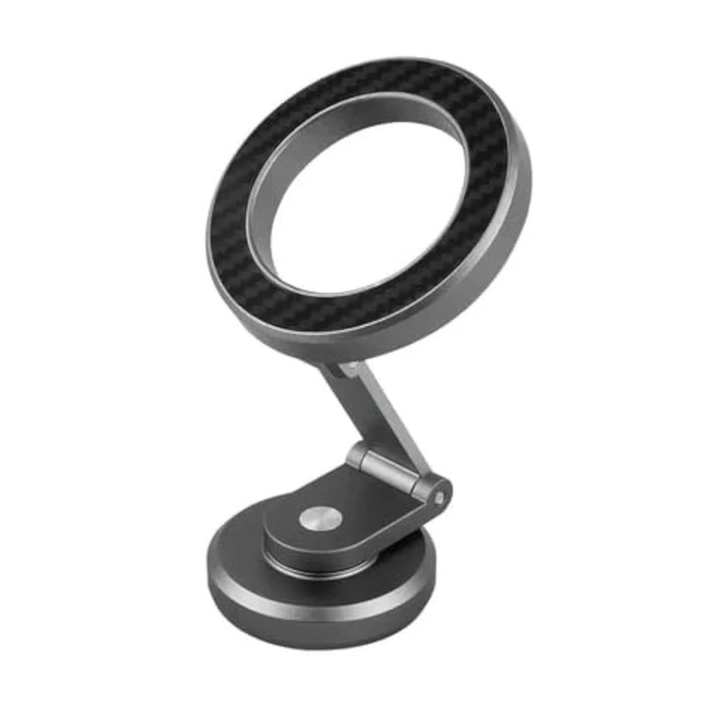 پایه نگهدارنده مغناطیسی برای نصب در داخل خودرو (داشبورد یا سطوح صاف).طراحی شیک و مینیمال، معمولاً به رنگ نقرهای (Silver). از آلیاژ آلومینیوم با کیفیت بالا ساخته شده که دوام و زیبایی را تضمین میکند.