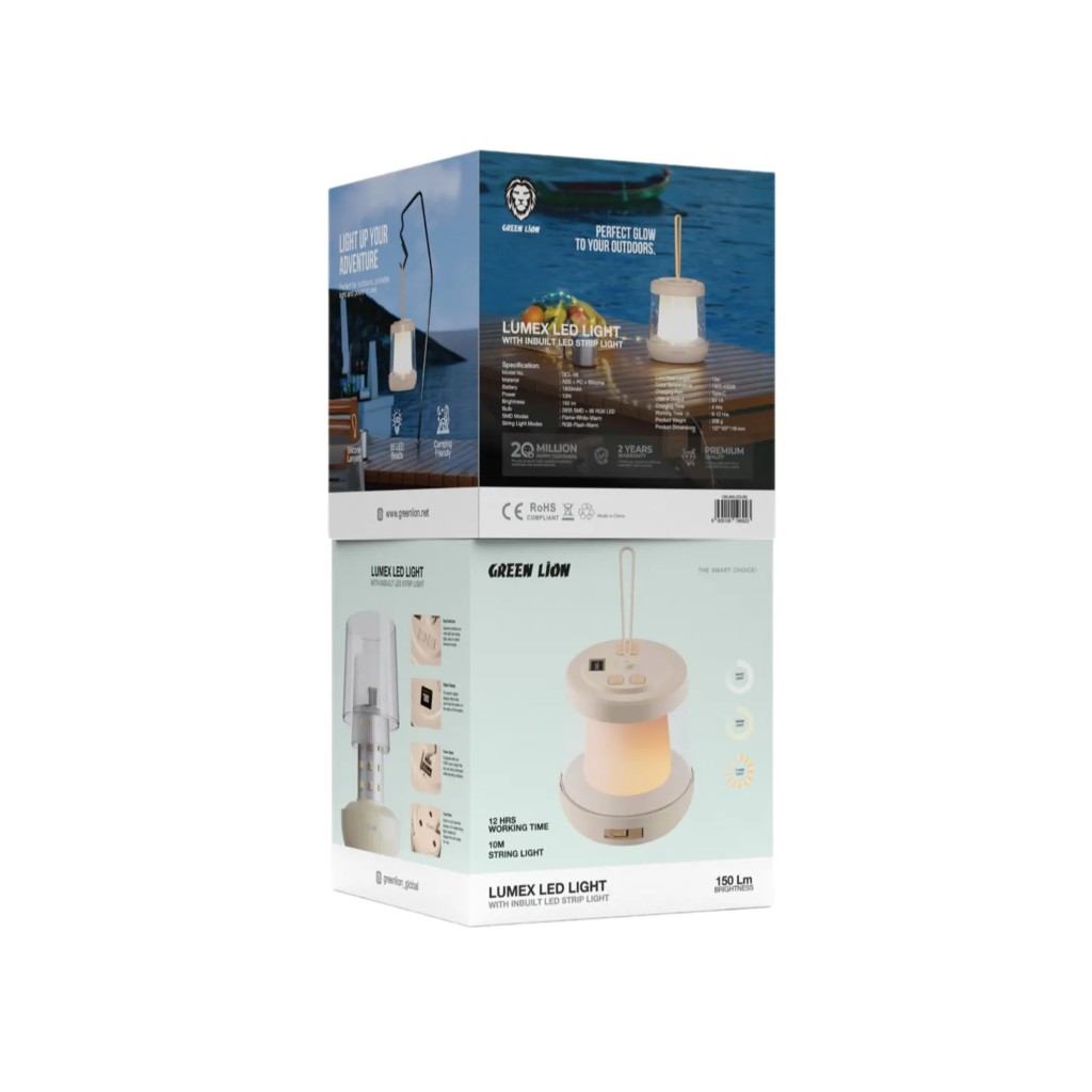 طول سیم ۱۰ متر و بند سیلیکونی حمل آسان، این محصول را به گزینهای عالی برای کمپینگ و استفاده در فضای باز تبدیل کرده است. این چراغ از طریق پورت شارژ Type-C شارژ میشود و علاوه بر آن، دارای خروجی USB-A با توان 5V/1A است. پس از ۴ ساعت شارژ، چراغ میتواند بین ۶ تا ۱۲ ساعت روشنایی مداوم ارائه دهد.