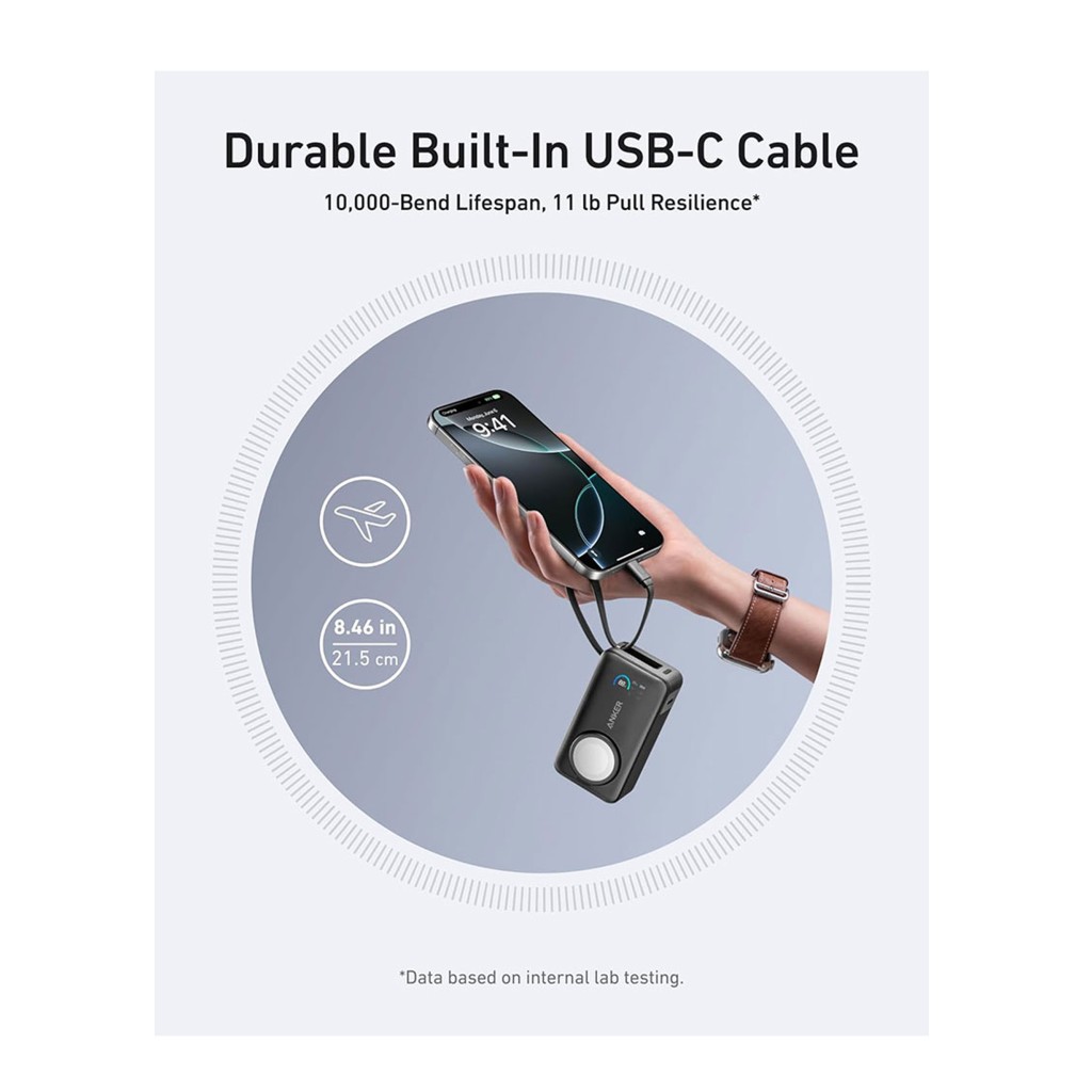 Anker MagGo Power Bank for Apple Watch (A1657) یک پاوربانک سبک، جمعوجور و هوشمند با ظرفیت 10,000 mAh است که قابلیت شارژ همزمان اپل واچ (با توان ۵W وایرلس) و دستگاههای USB‑C تا ۳۰W را دارد.