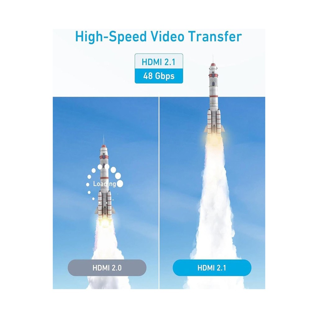 کابل HDMI انکر از نسل جدید فناوریهای تصویری پشتیبانی میکند؛ از جمله Dynamic HDR برای رنگهای واقعیتر، VRR برای نرخ نوسازی پویا در بازیها، و ARC/eARC برای انتقال صدای چندکاناله بدون فشردهسازی. اتصال این کابل به PS5، Xbox Series X/S یا Apple TV تجربهای روان و بدون تأخیر ایجاد میکند، حتی در صحنههای سریع بازی یا فیلمهای سینمایی