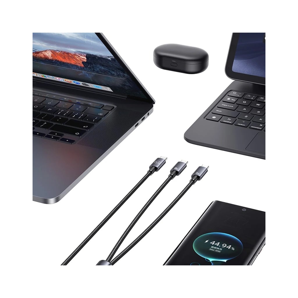 کابل شارژ یوسمز مدل SJ740 یک راهحل تخصصی و هوشمندانه برای شارژ همزمان دو دستگاه USB-C از طریق یک پورت خروجی است. این کابل با ساختار ۲ در ۱ و توان خروجی کلی ۷۲ وات، بهطور خاص برای کاربرانی طراحی شده که نیاز به شارژ یک دستگاه پرمصرف (مانند لپتاپ) و یک دستگاه کممصرف (مانند گوشی) را به صورت همزمان دارند. ویژگی رقابتی کلیدی در SJ740، توان خروجی نامتقارن آن است که بهطور مشخص به شرح زیر تقسیم میشود: ۶۰ وات برای یک پورت و ۱۲ وات برای پورت دوم. این تقسیم هوشمندانه توان، اطمینان میدهد که لپتاپ شما شارژ سریع ۶۰ واتی خود را دریافت کند، در حالی که دستگاه دوم نیز شارژ نگه میدارد.